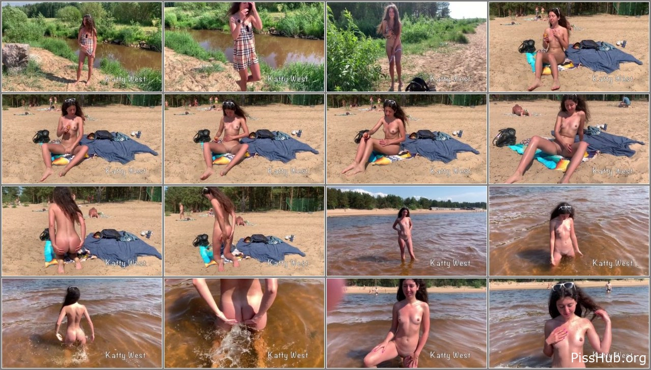 Download Porn - Cute girl sunbathes on a nudist beach and pisses in public - Katty West