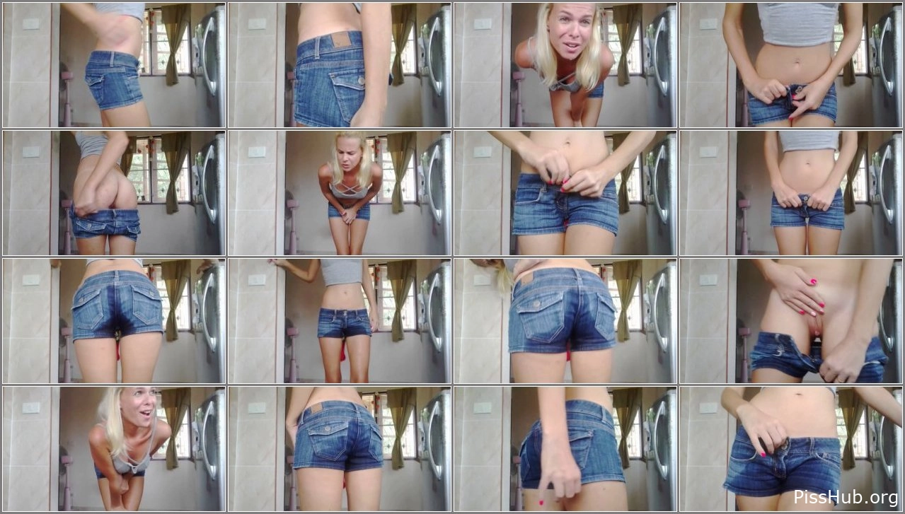 Title: Desperate To Pee And Wet Blue Jeans Short