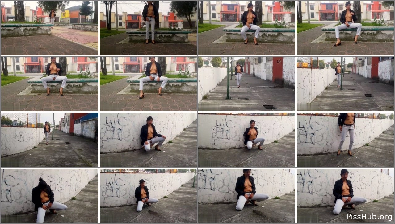 Title: Public Pissing Outdoor In Ripped Jeans